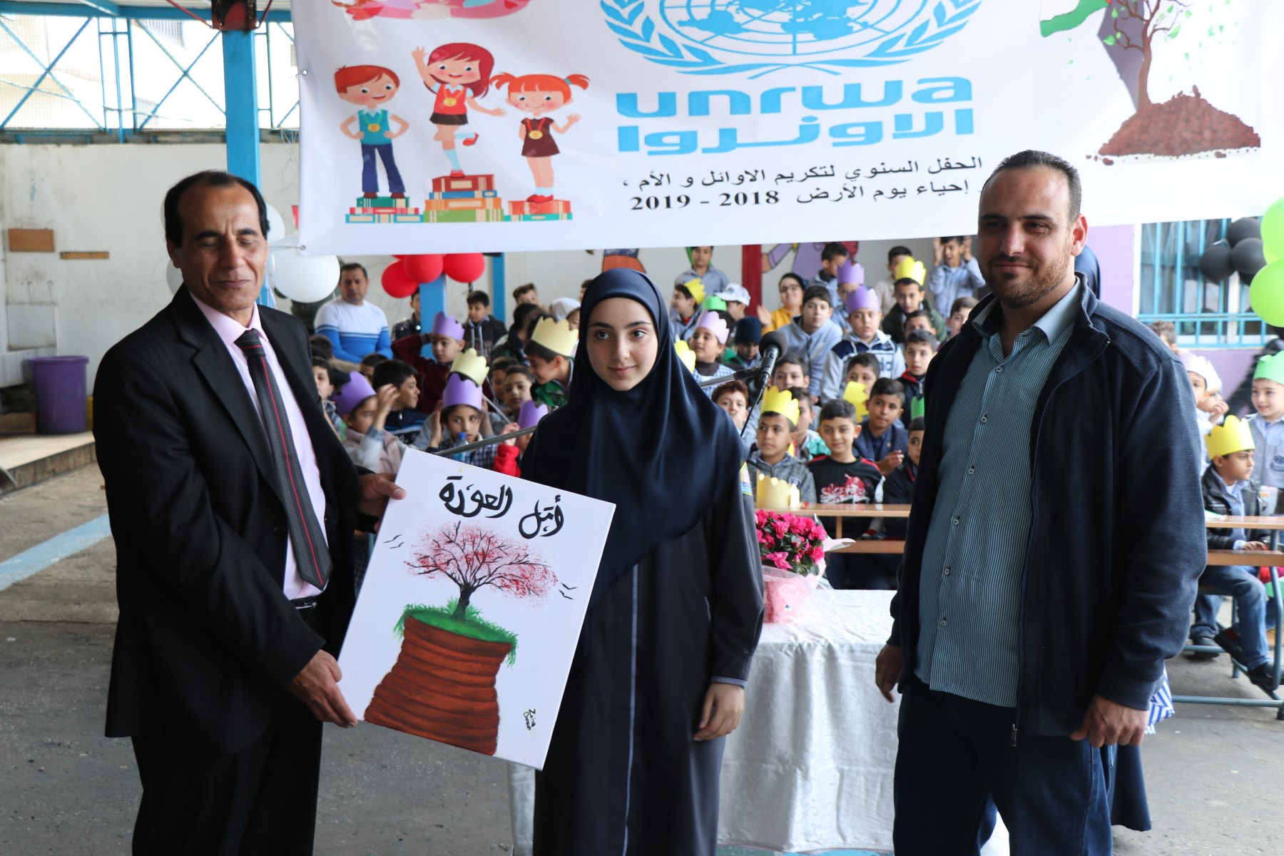 كلماتٌ اجتمعت بمناسبة يوم_الأرض_الفلسطيني في الإحتفال الذي أقيم في مدرسة الظاهرية الأنروا – الغازية، الذي تخلل فقرات متنوعة وكلمة لمديرة المدرسة، لجنة الأهل والتلاميذ، بمشاركة تلاميذ ثانوية المهدي (ع) الغازية، حيث رسمت ريشة كل واحدة منهن ألوان القضية الفلسطينية، وتزين بأداء نشيدموطني للتلميذ أحمد غدار، بحضور معاون مدير الثانوية الأخ حسين حيدر، مسؤولة الأندية المدرسية الأخت ملاك غندور، مسؤول وحدة الأنشطة العامة الأخ محمد غندور، وحشد من الأهالي الكرام، لتوزع اللوحات الفنية على ثلة من الحضور الكريم.