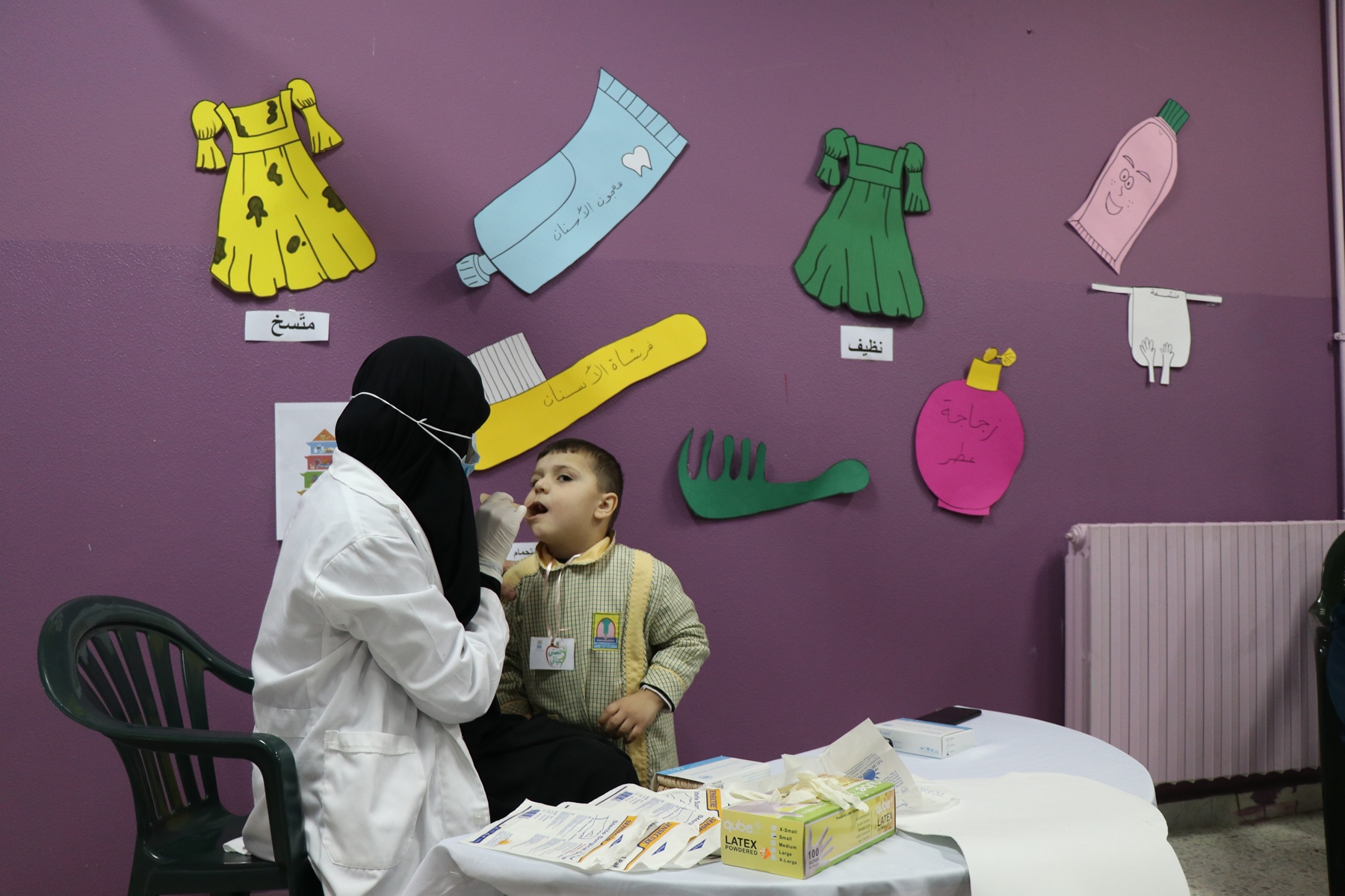 كما تم الكشف على أسنان جميع الأطفال من قبل خريجة المدرسة الطبيبة صفاء زين الدين مع ملء استمارة خاصة بالحالة الصحية لأسنان كل طفل أرسلت معه للأهل للمتابعة