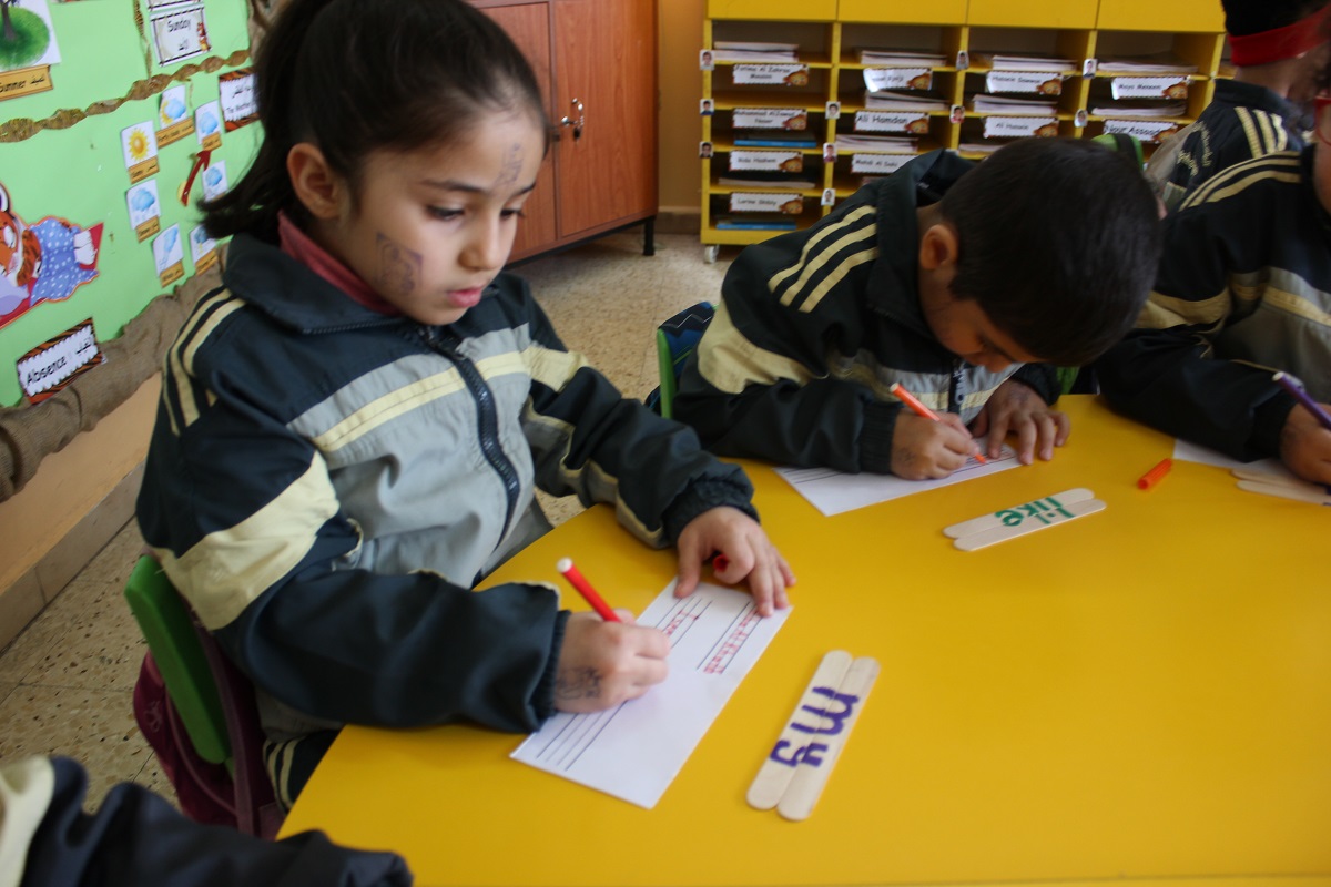في اطار تفعيل انشطتها التعليمية نفذت المؤسسة الاسلامية للتربية والتعليم مشغرة لعبة تربوية لصف الروضة ثالثة إ ج match the sticksحيث قام الاطفال باستعمال العيدان الخشبية بجمع الكلمات وتأليف جمل منها ذات معنى.