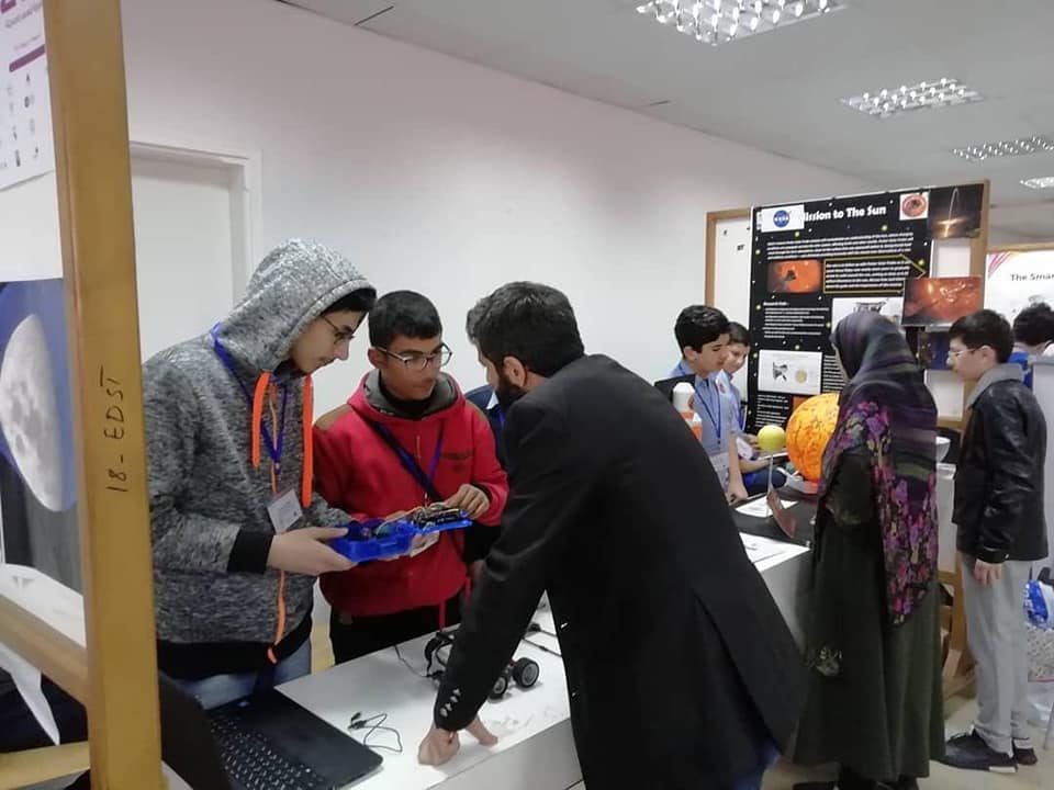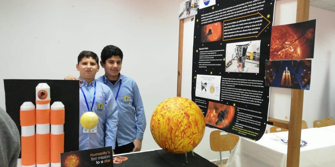 المشروع الثاني– رحلة_إلى_الشمس من إعداد التلميذين عباس صالح وفضل زريق من الصف الثامن الأساسي- فئة الفلك وقد نالوا شهادة تقدير.