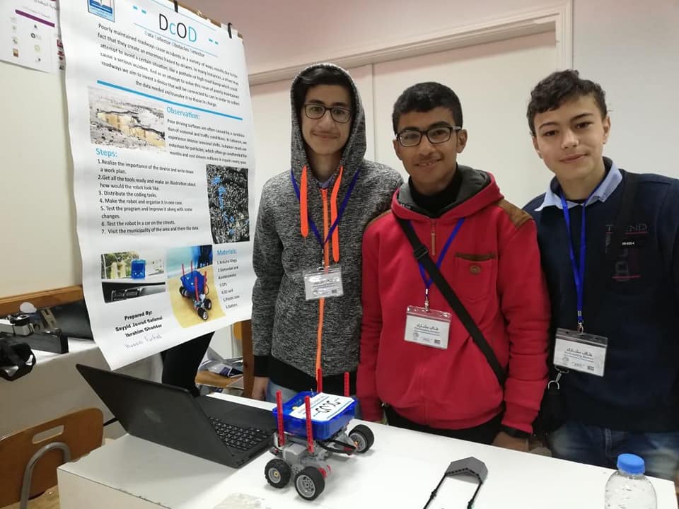 المشروع الأول– decod من تنفيذ التلامذة حسين فرحات وابراهيم غدار وسيد جواد الصفاوي من الصف العاشر- فئة المشاريع التشغيلية والروبوت والذي حصد الميدالية الفضية